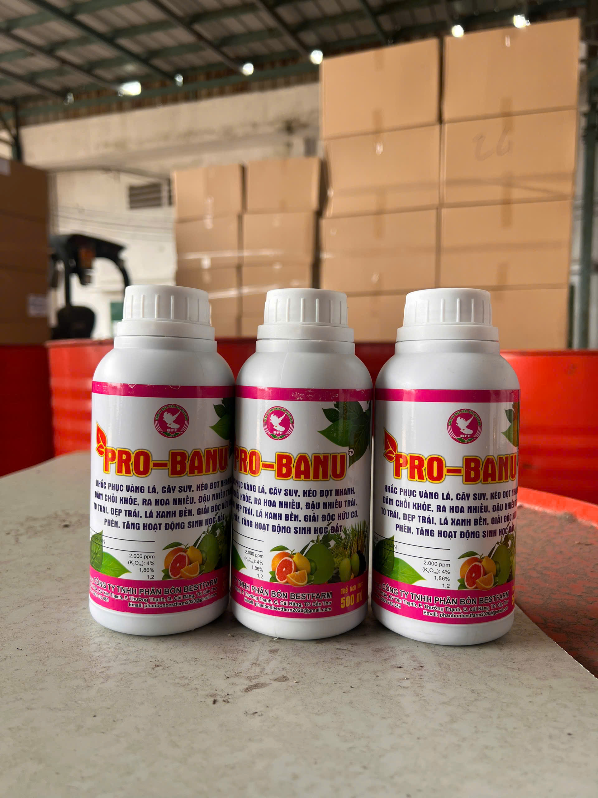| Cây ăn trái | 20–25 ml Pro-Banu/bình 16L nước | 10–15 ngày/lần | Phun ướt đều tán lá |