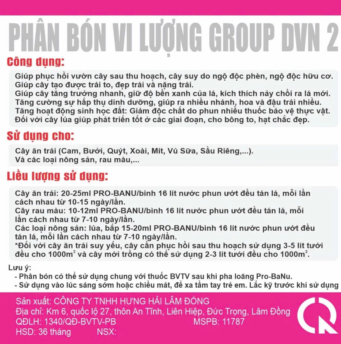 Pro-Banu là dung dịch phân bón lá chứa các hoạt chất dưới đây: