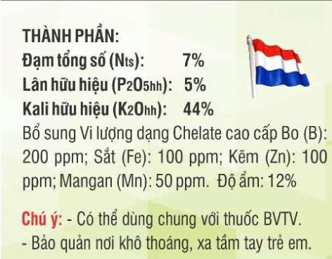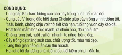 - Cung cấp Kali hàm lượng cao cho cây trồng phát triển cân đối.