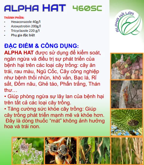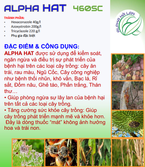 - Đặc trị: Bệnh Thối nhũn, Khô vằn, Bạc lá, Rỉ sắt, Đốm nâu, Ghẻ táo, Phấn trắng, Thán thư, Đen quả, Lem lép hạt…